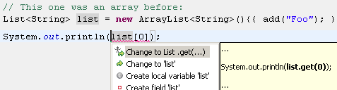 array / List related compile errors. The concept of defining quick fixes by regular expressions and